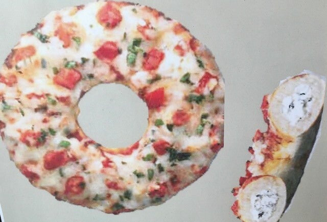 Lockerer Hefeteig mit Frischkäse, Pesto-Füllung belegt mit Tomate und Basilikum